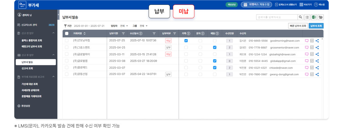 발송한 납부서 열람 여부와 납부 상태를 한눈에 확인할 수 있어요.